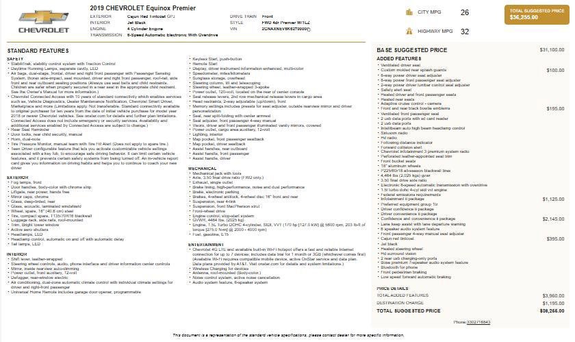 THE 2019 CHEVROLET EQUINOX PREMIER DELIVERS PREMIUM COMFORT, ADVANCED SAFETY, AND EFFICIENT PERFORMANCE IN A VERSATILE SUV. THIS 2019 CHEVROLET EQUINOX PREMIER IS LOADED WITH HIGH-END FEATURES INCLUDING LEATHER, BOSE AUDIO, AND DRIVER-ASSIST TECHNOLOGY. AVAILABLE NOW AT FAIRWAY CHEVROLET GMC IN CALCUTTA, OHIO RIGHT OFF ROUTE 11 THIS EQUINOX OFFERS EXCEPTIONAL VALUE, MODERN TECHNOLOGY, AND EVERYDAY DRIVING CONFIDENCE.